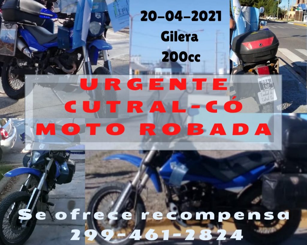 La moto fue robada el pasado 20 de abril y para quienes puedan dar datos, se podrán comunicar al 2994612824.