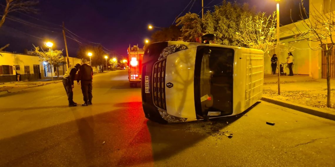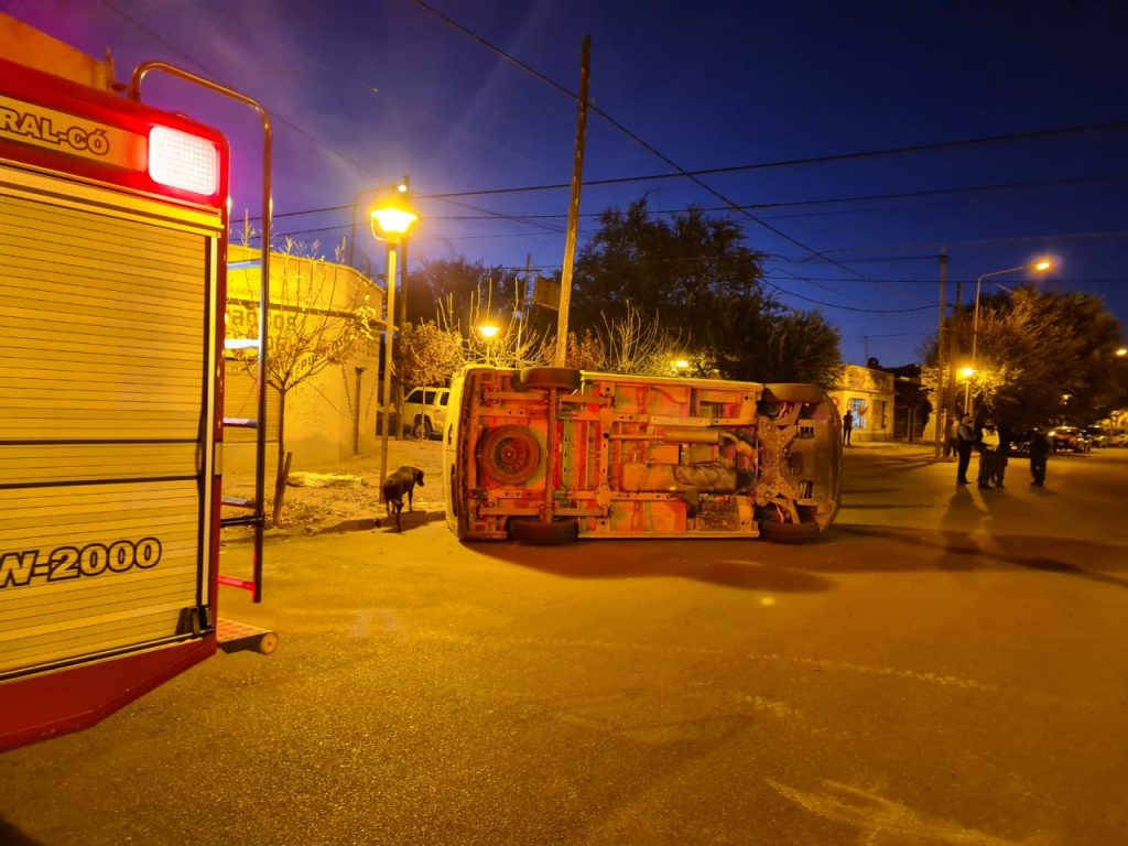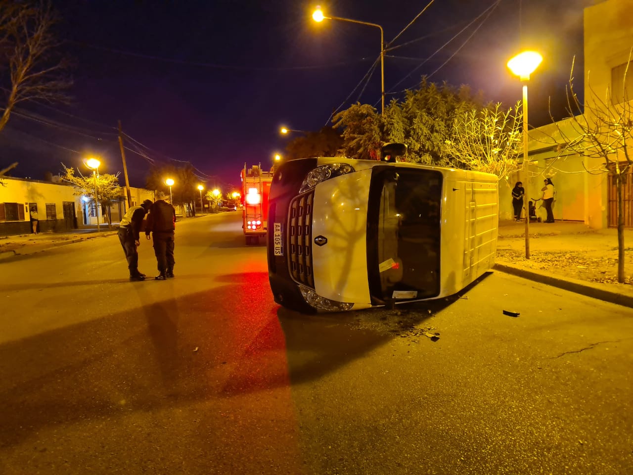 Una mujer fue trasladada hasta el hospital de Complejidad Media después del choque que terminó en vuelco, en la esquina de General Paz y Belgrano, en el barrio Centro Sur de Cutral Co. Era la conductora de la camioneta que quedó sobre uno de sus laterales tras el impacto con un Fiat Palio.