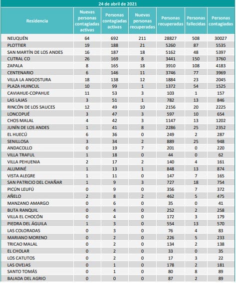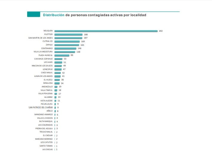 En cuanto a los recuperados, suman 9 pacientes, 8 cutralquenses y uno huinculense. Los casos activos de Cutral Co son 169 y en 99 de Huincul, y totalizan 268.