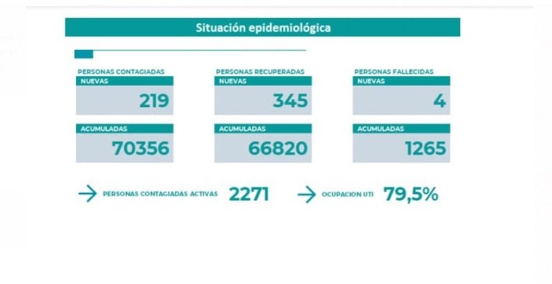 En la provincia, son 219 las nuevas personas reportadas y cuatro fallecidas en total.