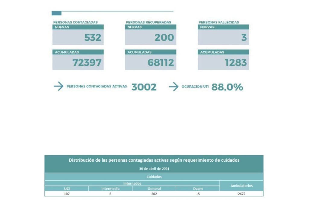 En tanto, esta noche, desde el parte emitido por el comité provincial, los casos en toda la provincia son 532. Mientras que los recuperados son 200 y las personas fallecidas son 3.