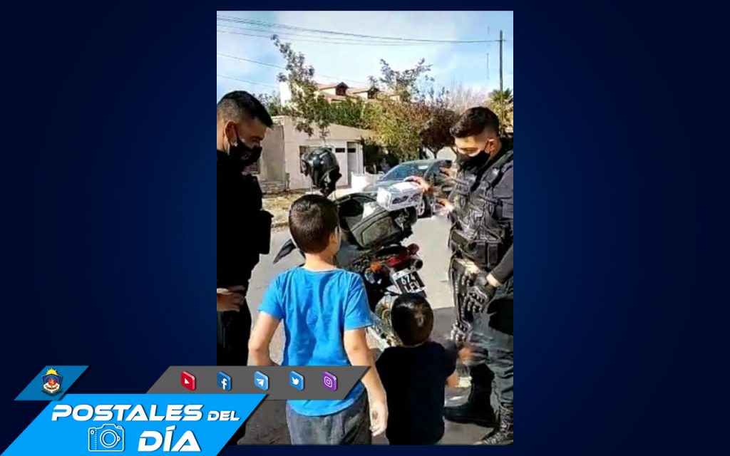 POSTALES DEL DÍA: Patrulleros del Servicio Especial Motorizado Cutral Có, entregaron un regalo a Francisco, un niño amante de las motos policiales.