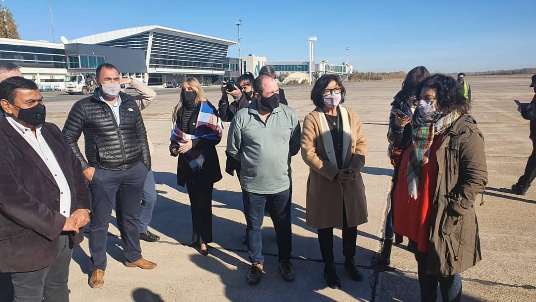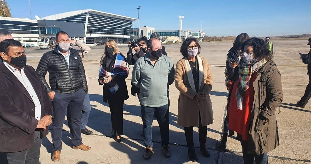 Carla Vizzotti recorre el país para acordar acciones para afrontar la segunda ola de COVID-19. Se reunió con el gobernador Omar Gutiérrez y también se encontró con el intendente José Rioseco, con quien compartió unos minutos en el aeropuerto.