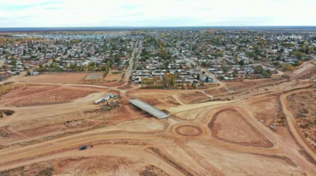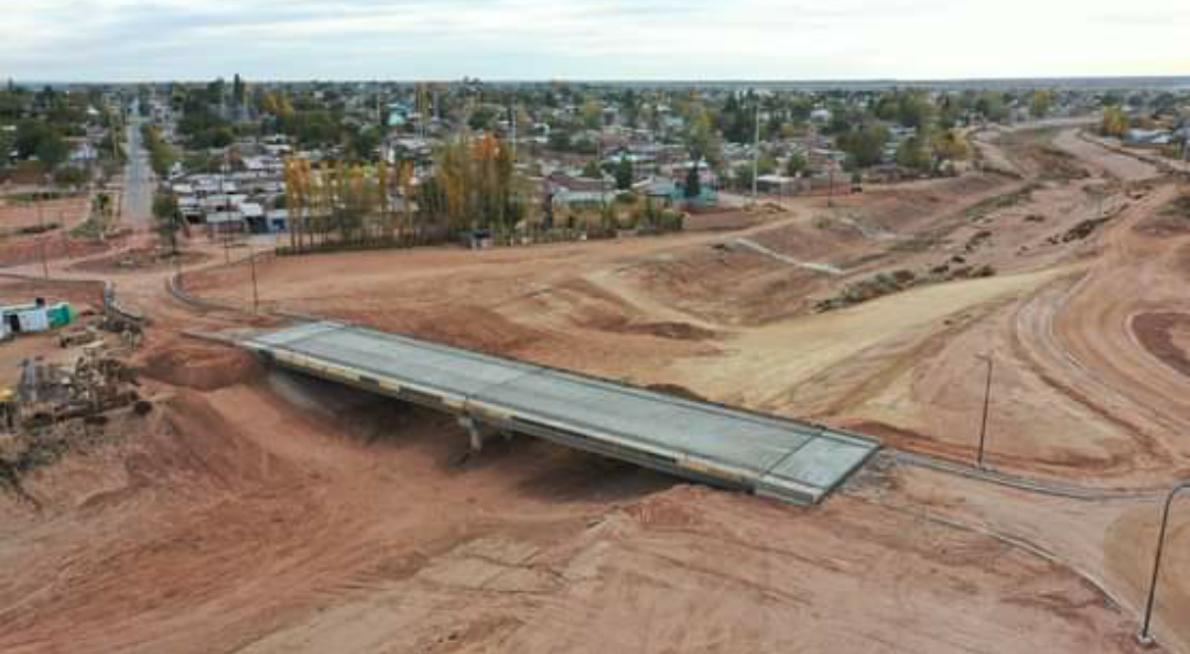 Esta semana se difundieron imágenes aéreas de la obra que conectará a los barrios Peñi Trapún y Nehuen Che del oeste de Cutral Co, con Brentana y Monte Hermoso de la zona sur. El trabajo no solo consiste en dar tránsito sobre el canal colector, sino también pavimento y parquización a la zona.