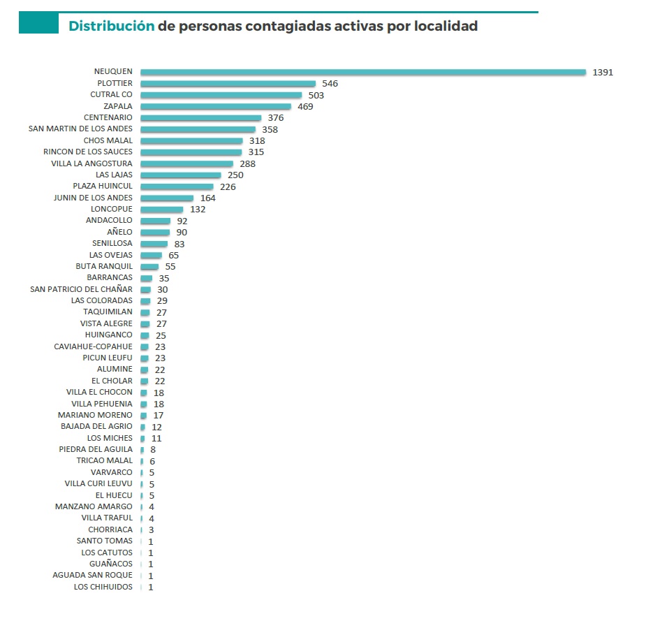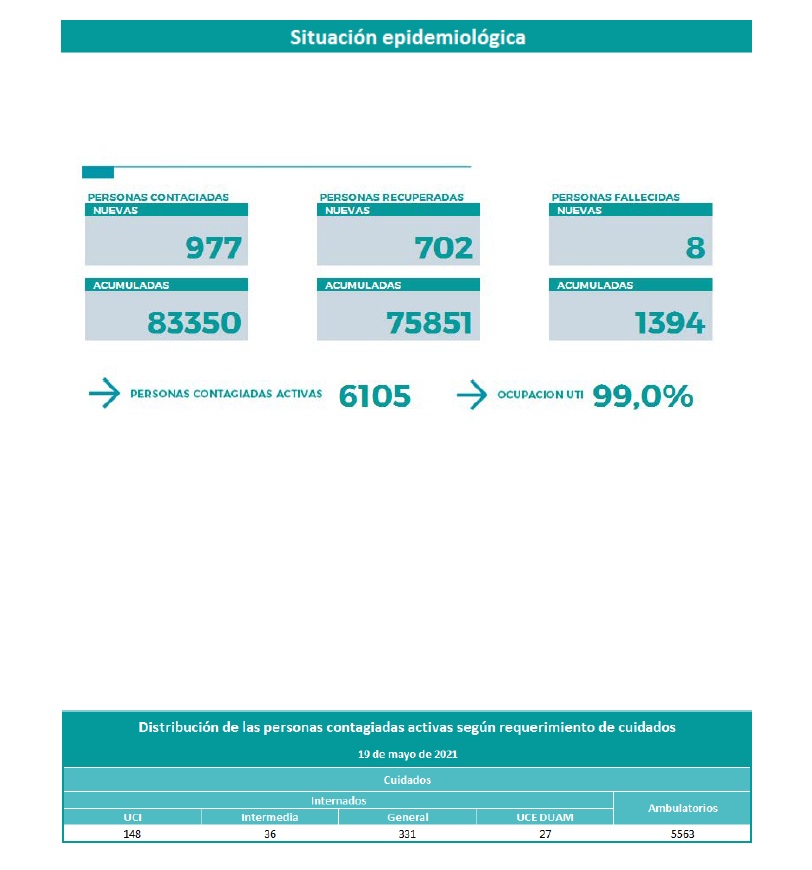 En cuando a las personas recuperadas son 702 en toda la provincia. La ocupación de las camas es del 99,0 % y las personas activas son 6.105