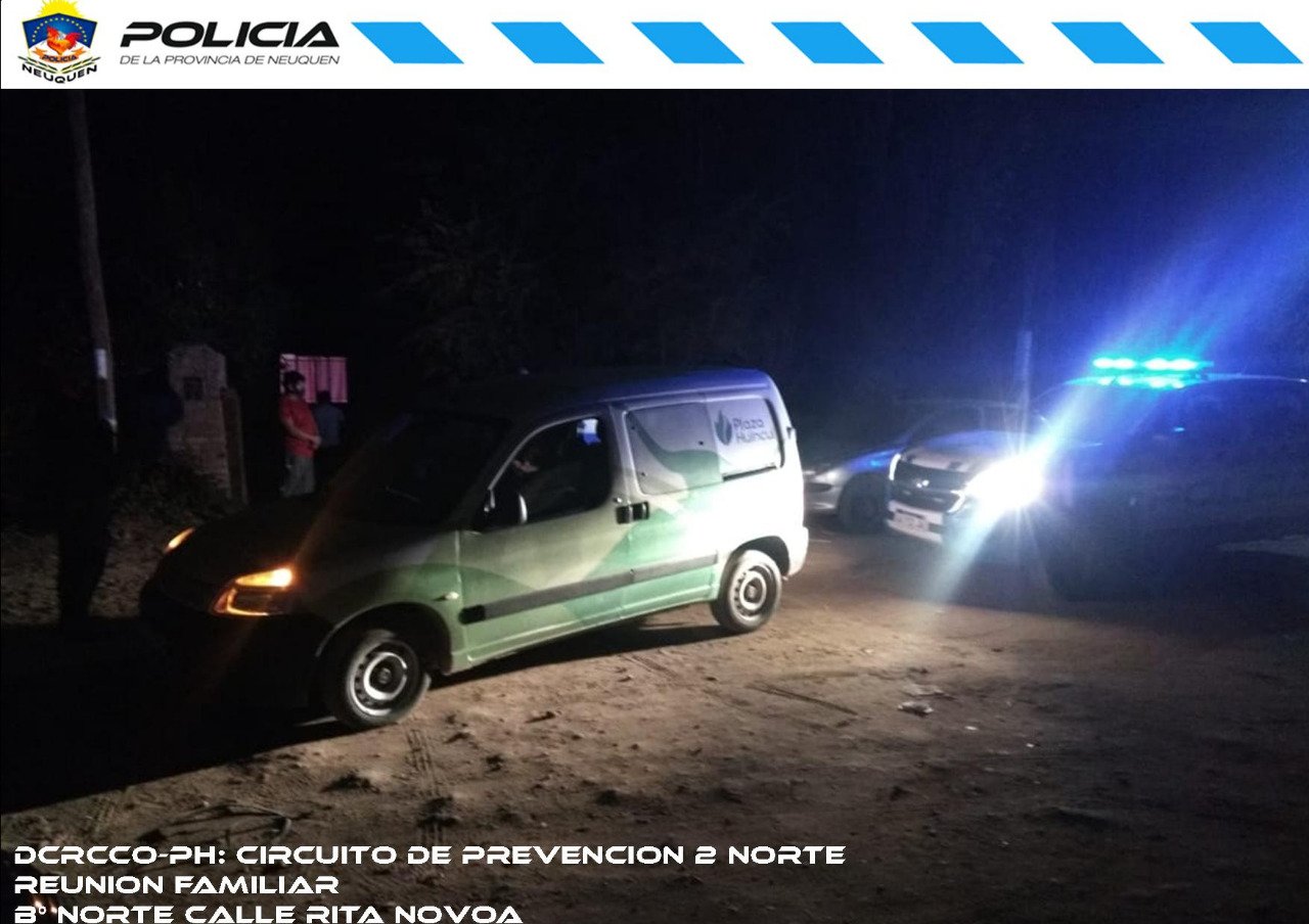 Según informó la policía, a través de la dirección Seguridad Interior Cutral Co, fueron alertados de la reunión familiar en una casa de calle Rita Novoa de Huincul, alrededor de las 21.30 del domingo.