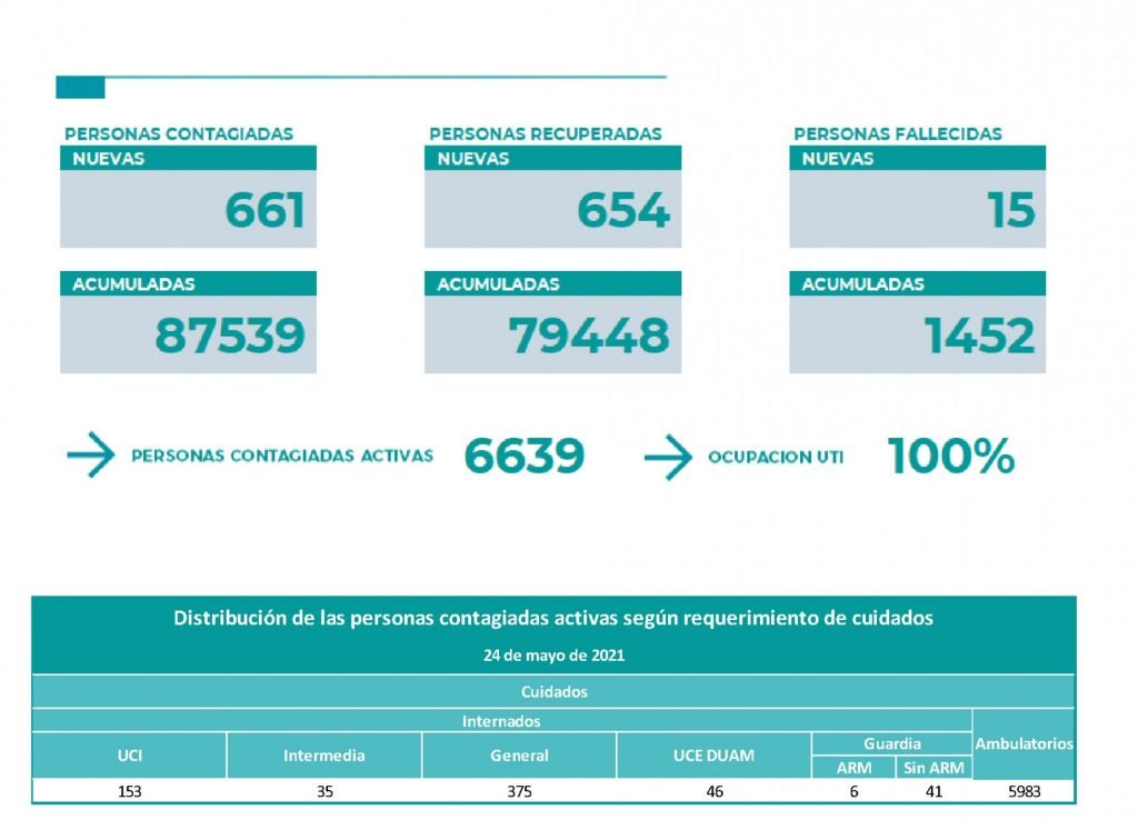 El comité de emergencia provincial confirmó este domingo 661 casos de coronavirus en la provincia y las personas fallecidas fueron quince, una cifra alta para la provincia.