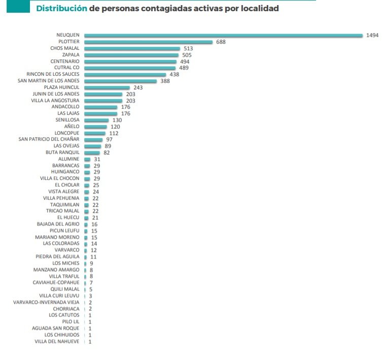 Además se informó que las personas internadas en guardias de los hospitales, a la espera son 43, de los cuales 11 están en Cutral Co.