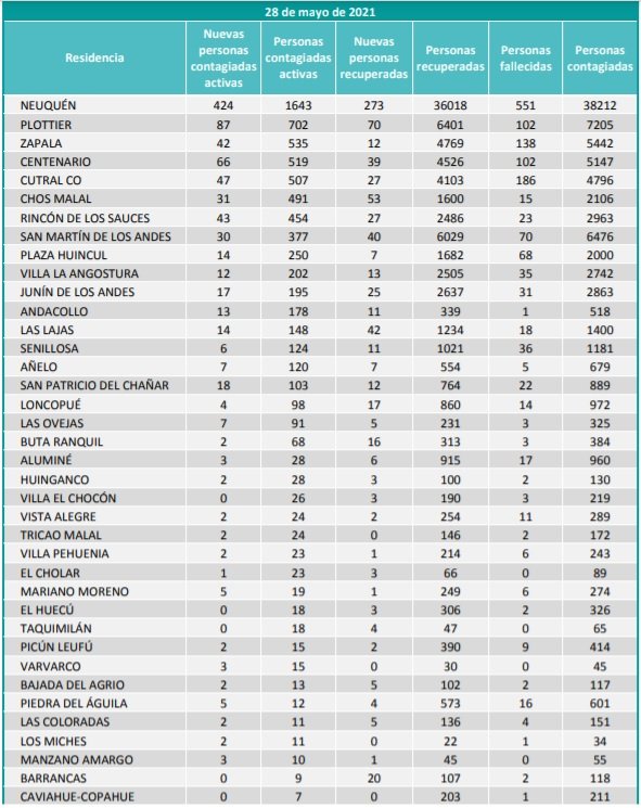 Este viernes, el comité provincial informó 21 personas fallecidas por coronavirus y 921 nuevos casos de coronavirus en la provincia de Neuquén.