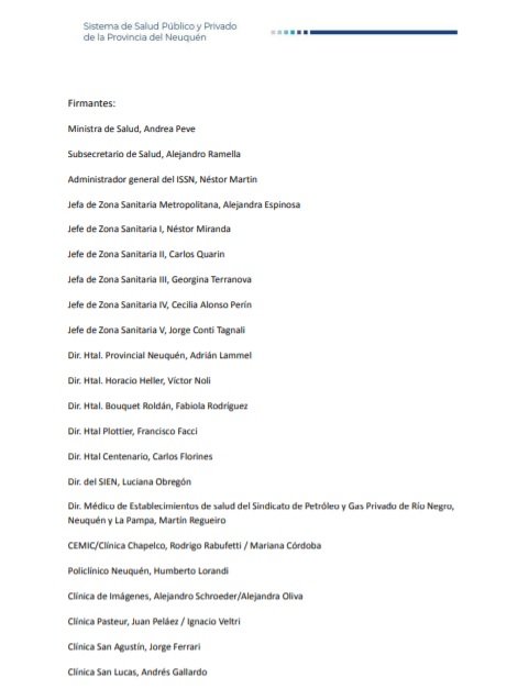 Acá está el documento y la firma de los representantes de los hospitales y zonas sanitarias.