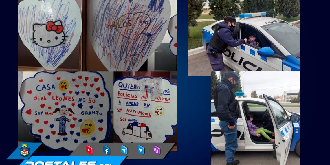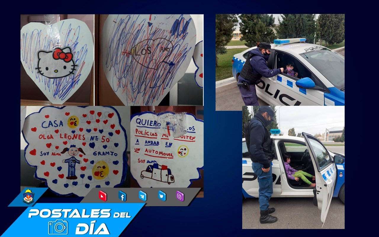 Alma es una pequeña de 8 años que vive en el oeste de Cutral Co y hace algunos días visitó la comisaría 15 junto a su familia para llevar una serie de dibujos como regalos. Allí expresaba su anhelo de conocer a los uniformados y subir a una patrulla.
