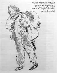 Un andar lento, una renguera marcada, la barba larga y la bolsa infaltable al hombro llena de harapos y bolsas plásticas. La espalda encorvada. Tal vez por el peso de la bolsa que constantemente carga. Pero también me hace pensar que el sentimiento de culpa, la tristeza profunda y la soledad, pesan tal vez más aún.