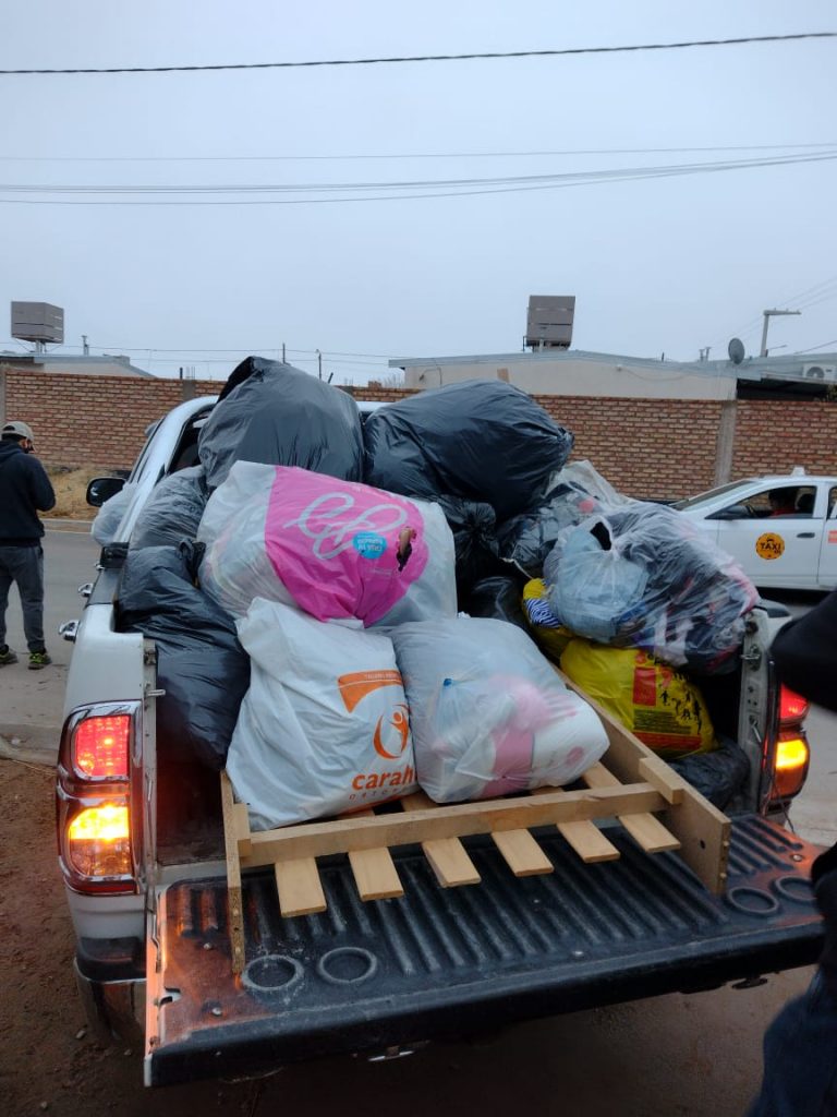La presidenta de la comisión vecinal, Graciela Bonin, informó que se llenaron dos camionetas con alimentos y ropa, que fue recibida por integrantes de la familia.