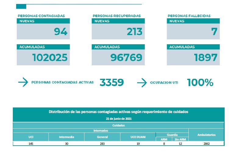 Mientras tanto, la ocupación de camas UTI es del 100 %