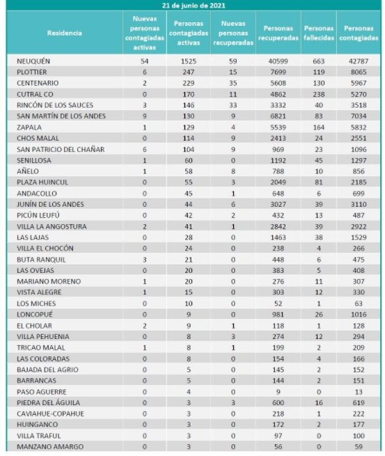 El comité de emergencia provincial confirmó 94 nuevos contagios en Neuquén y siete personas fallecidas. En cuanto a las recuperadas son 213 en todo el territorio provincial.