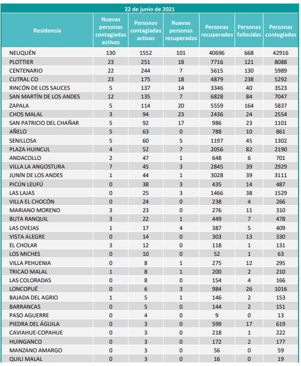 Este martes, el comité de emergencia provincial reportó 13 personas fallecidas y 265 nuevos casos confirmados de coronavirus en la provincia de Neuquén. Aunque disminuyó con respecto a otras semanas el número de nuevos contagios, no desciende el número de víctimas fatales.