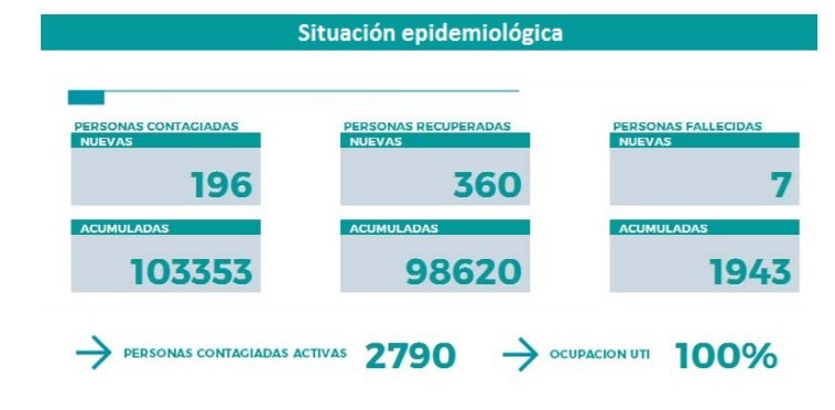 A pesar del descenso en los nuevos casos registrados, los decesos se mantienen al igual que la ocupación de camas UTI que sigue siendo del 100 % a nivel provincial.
