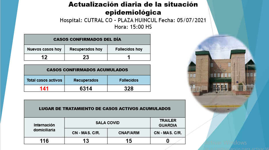 Además fueron 23 casos recuperados en Cutral Co y Plaza Huincul. Del total de los casos, hay 28 personas hospitalizadas y 15 de ellas cuentan con un respirador, mientras que 116 pacientes restantes permanecen con internación domiciliaria.
