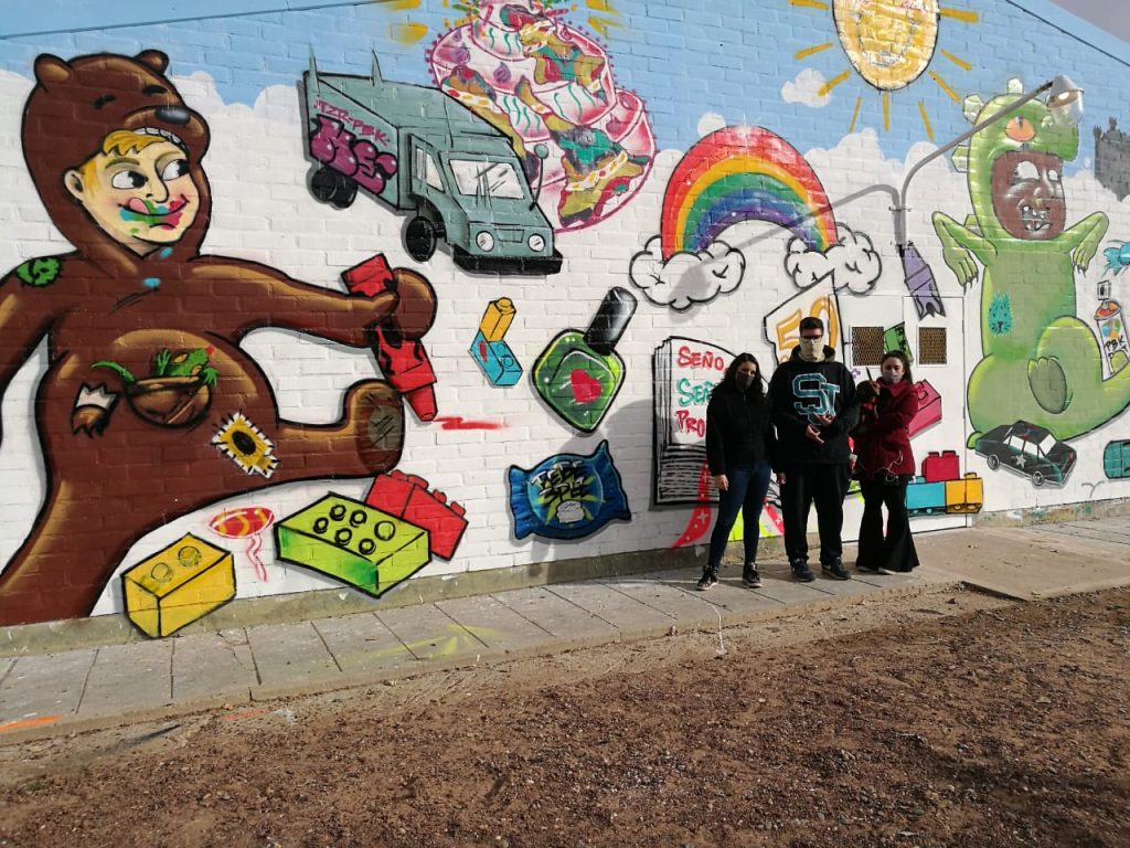 Los encargados de la obra fueron los artistas de la comarca Pupe, Damián Meco y Brian Doso quienes recibieron el llamado de la seño Marité para sumarse a esta iniciativa. El trabajo les llevo una semana de planificación y tres días de pintura para plasmar una aventura de niños en la pared. “Quisimos recrearon a nosotros como niños y este el resultados de cada uno “expresó Pupe.