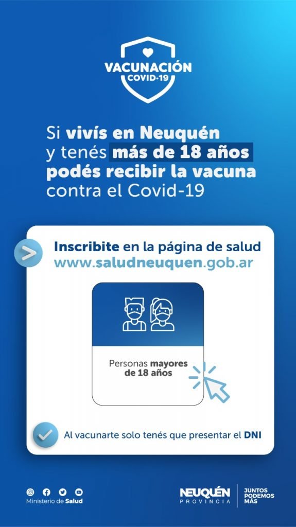 Para continuar con el plan de vacunación , provincia sumó un nuevo rango de edad. La opción para mayores de 18 años sin factores de riesgo ya está cargada en el registro de la página del Ministerio de Salud, en el siguiente link. https://app.andes.gob.ar/vacunacion/inscripcion/sin-factores-riesgo