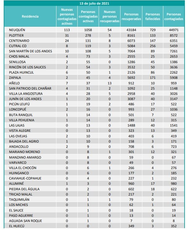 El comité de emergencia provincial confirmó este martes cinco personas fallecidas y 229 nuevos casos de coronavirus en la provincia de Neuquén.
