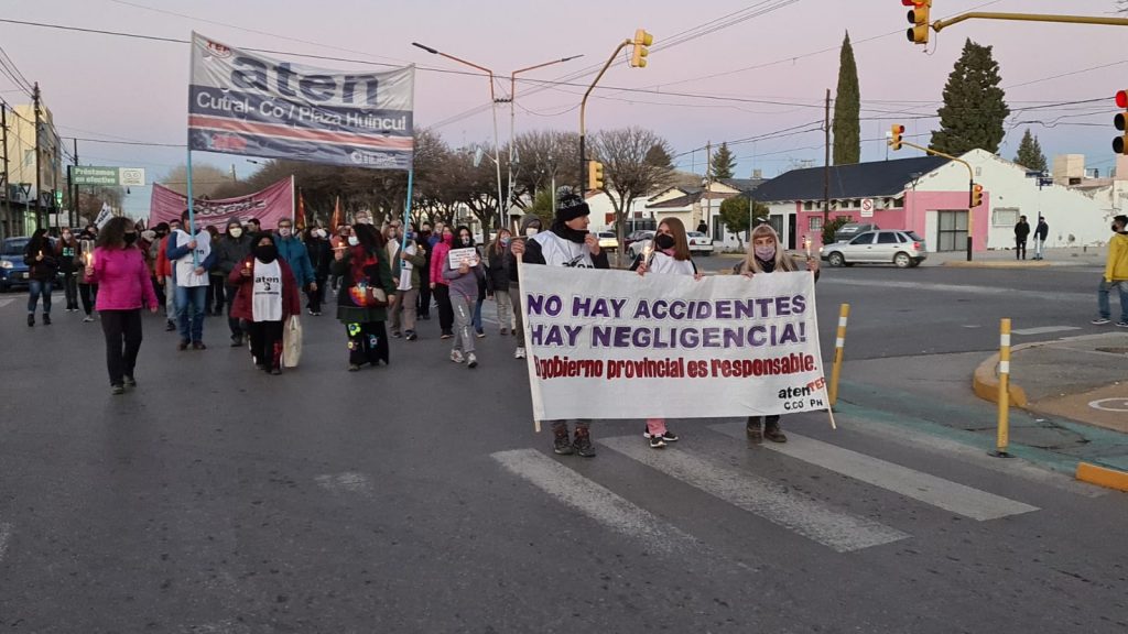 Una vez que la movilización llegó a Carlos H. Rodríguez y avenida del Trabajo, los referentes de las distintas agrupaciones que conforman ATEN, hablaron. Fue la secretaria de la seccional local, Viviana Sandoval, quien refirió la impotencia que “inunda a lo largo y ancho del país” porque nuevamente Neuquén pierde una trabajadora de la educación “por la negligencia y la desidia del Estado provincial”.