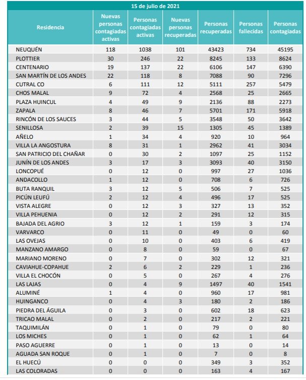 Los casos activos en la provincia son 2.164 mientras que la ocupación de las camas UTI en toda la provincia es del 84 %