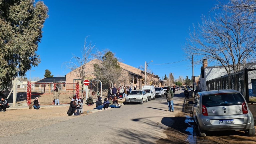La fila se inició en el portón y se extendió por toda la manzana y luego cruzó hacia la manzana siguiente que da a la avenida del Libertador. Una vez que se dispuso el ingreso, por grupos de a seis o siete personas, se les pedía mantener la distancia, se les tomó la temperatura y se colocó sanitizante.