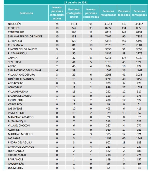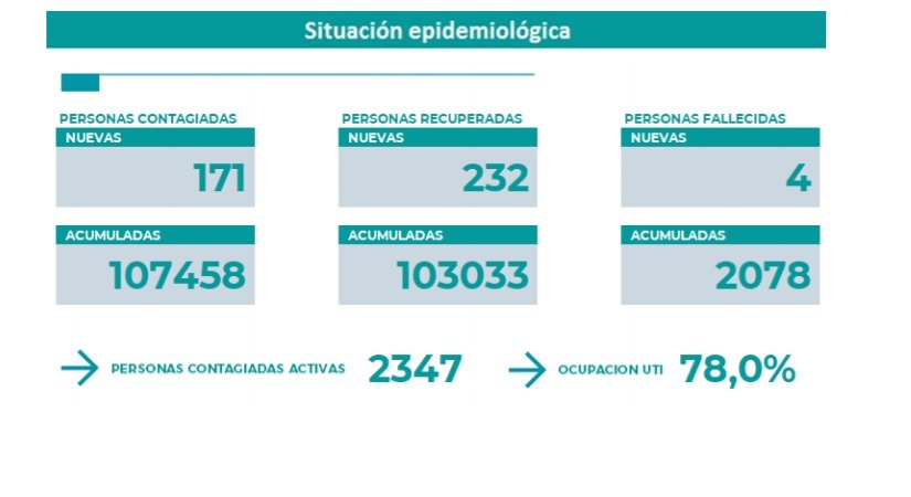 Este sábado, el comité de emergencia provincial informó cuatro personas fallecidas y 171 nuevos casos de coronavirus en Neuquén. Por otra parte, se indicó que hay 232 pacientes recuperados.