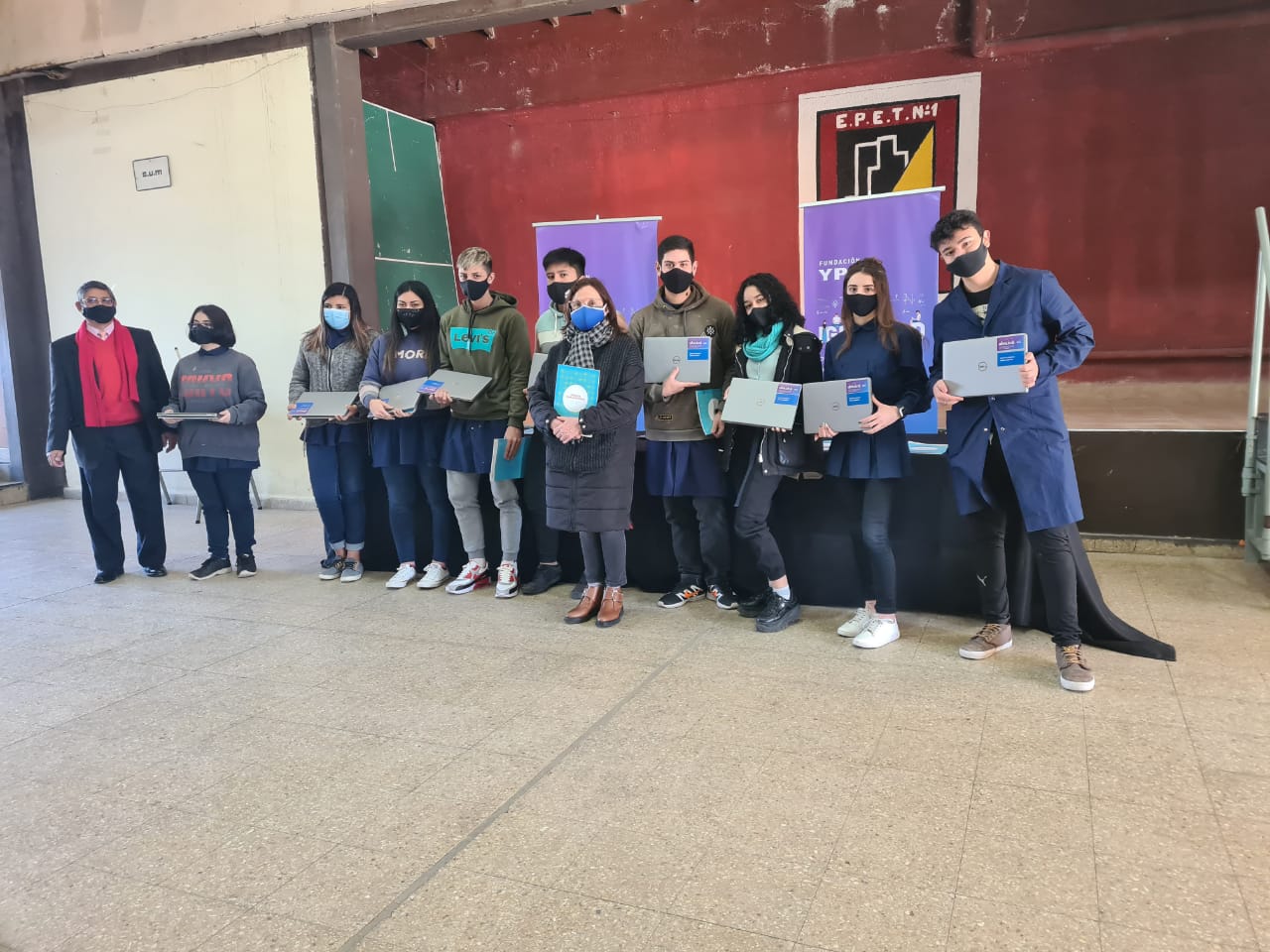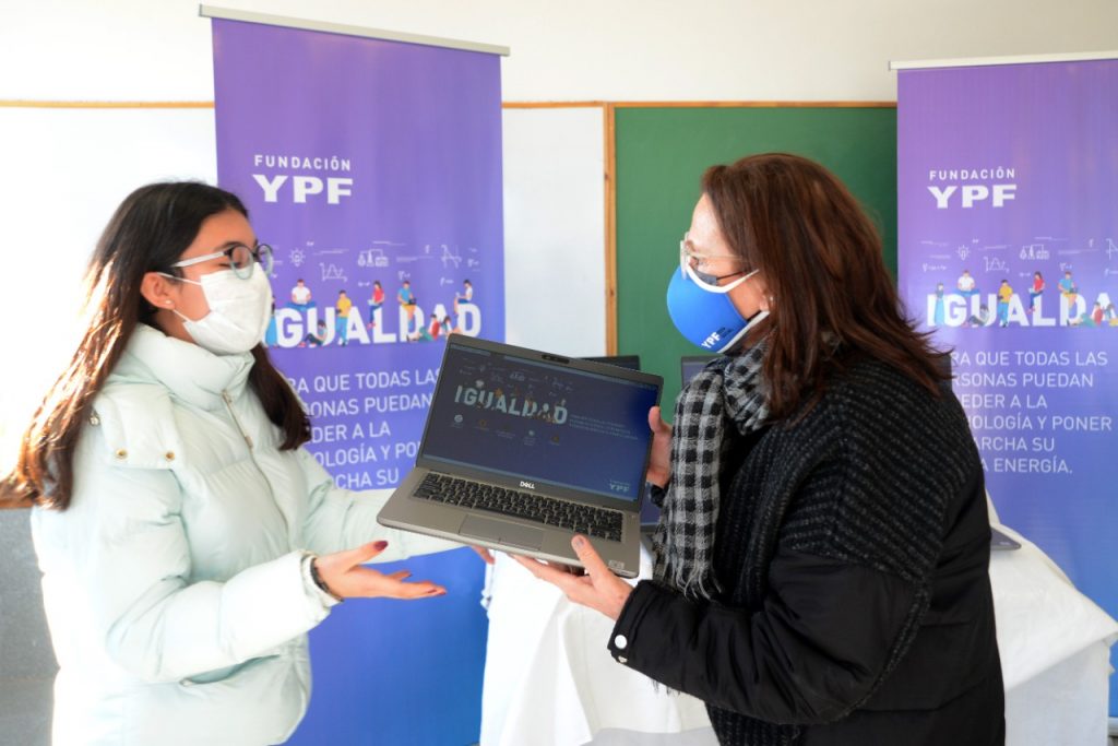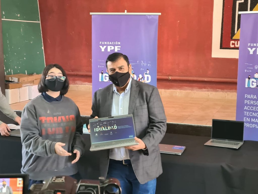 Hoy hubo jornada de entrega de notebooks para las chicas y chicos de 4º año de las escuelas técnicas EPET Nº 1 y EPET Nº 10. La directora de la Fundación YPF, Ofelia Cédola estuvo con un grupo de estudiantes, en representación del resto y los directores los establecimientos.
