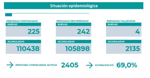 En la provincia hubo cuatro fallecidos y 225 nuevos casos de coronavirus
