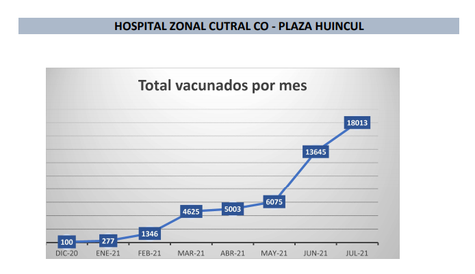 El trabajo realizado desde diciembre de 2020 es impresionante. En el cuadro que difundió el hospital zonal de Cutral Co y Plaza Huincul, se detalla que en julio se pusieron 18.013 dosis.