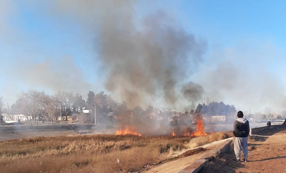 Esta tarde, después de las 17, los bomberos voluntarios de Plaza Huincul acudieron a extinguir el incendio que comenzó en el zanjón colector de crecientes. El fuego tomó varios metros y con dos unidades trabajaron en el lugar.