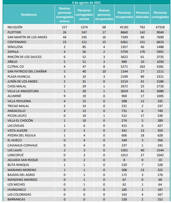 Este martes, el comité de emergencia provincial confirmó el fallecimiento de cinco personas por coronavirus en el territorio neuquino. A la vez, se reportaron 312 casos confirmados.