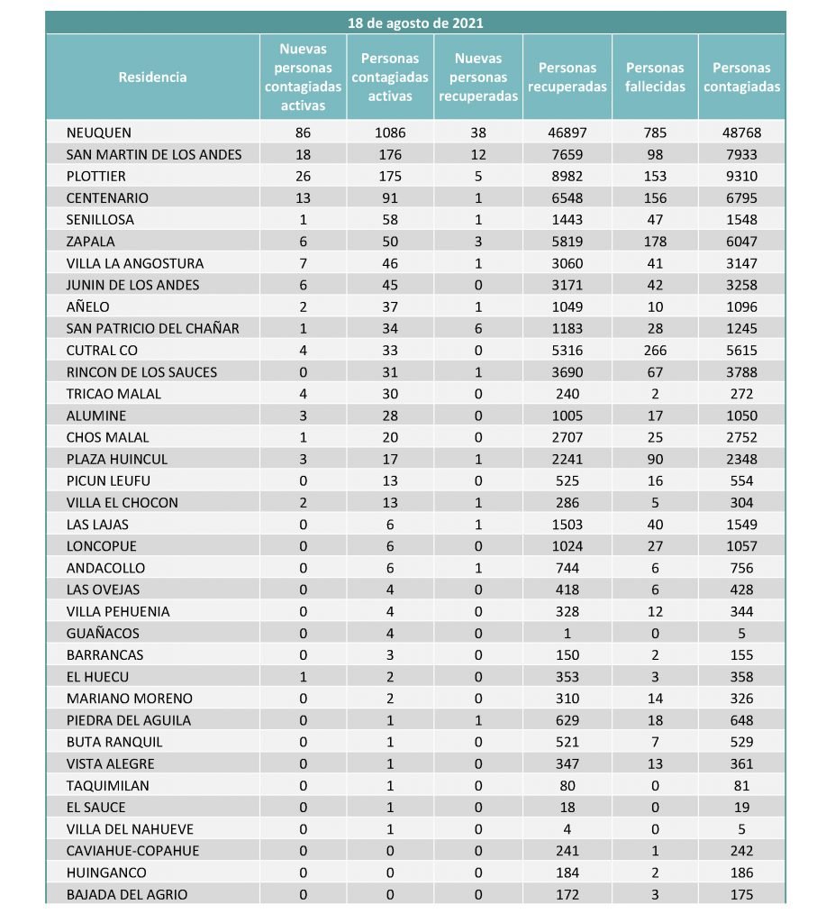 Este miércoles, el comité de emergencia provincial confirmó cuatro personas fallecidas por coronavirus y 184 nuevos casos detectados en todo el territorio neuquino.