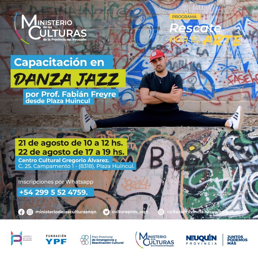 Desde la Secretaría de Relaciones Institucionales de Plaza Huincul invitan a todas las personas interesadas a formar parte del curso intensivo de danzas jazz, que se desarrollará este próximo fin de semana en el Centro Cultural Gregorio Álvarez de barrio Uno.