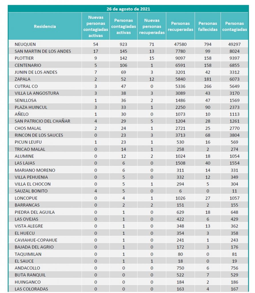 El Comité de Emergencias provincial publicó los últimos datos sobre la cantidad de personas contagiadas de COVID-19 en todo Neuquen. Se informó de 116 nuevos contagios y tres fallecimientos.