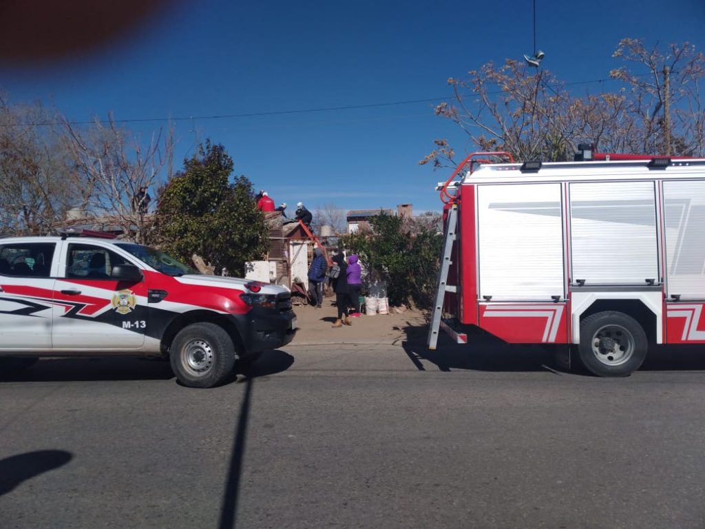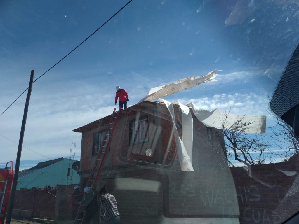 Los bomberos voluntarios y el personal de Defensa civil de Cutral Co trabajaron en el auxilio de las familias que sufrieron la voladura de parte de los techos, en sus viviendas.