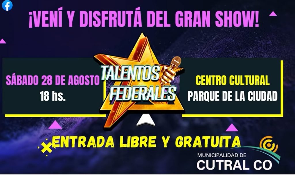 Este sábado, desde las 18, en el Centro Cultural de Cutral Co se llevará a cabo la primera gala del concurso “Talentos Federales”. Será en el Parque de la Ciudad, con entrada libre y gratuita. La capacidad será para 400 asistentes.