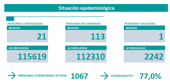 La cantidad de casos activos son 1.067 en todo el territorio provincial. En cuanto a la ocupación de las camas UTI en la provincia es del 77, 0 %.