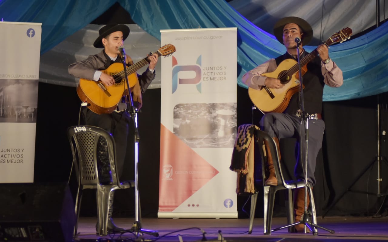 El encuentro de payadores se vivió a pleno en el Centro Cultural Ruca Lighuen de Plaza Huincul. La propuesta sumó a las escuelas municipales de danzas folklóricas.