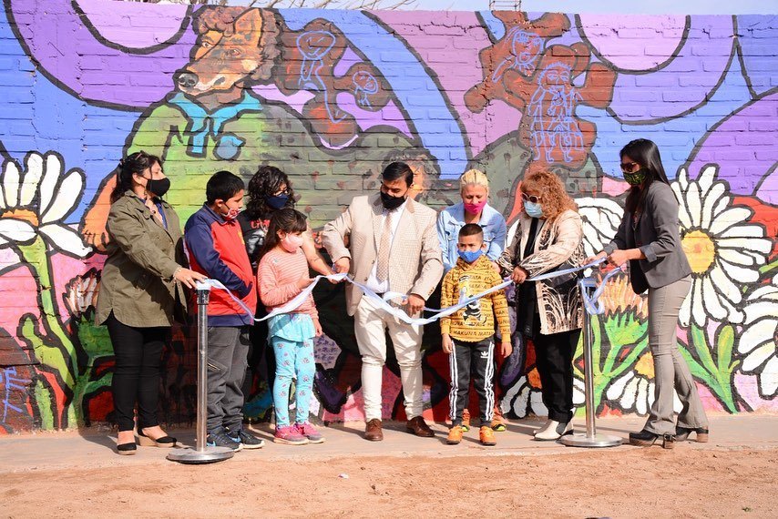 Durante la mañana de hoy se llevó adelante la inauguración del mural “El arte callejero al cuidado de las infancias” en la escuela Nº 63 del barrio General Belgrano, ex450 Viviendas de Cutral Co.