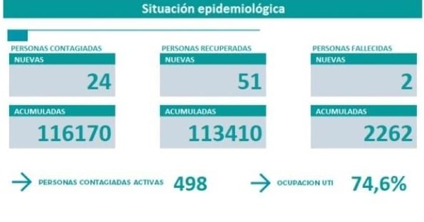 Los casos activos de la provincia son 498 y las personas recuperadas son 51, en todo el territorio provincial. La ocupación de las camas UTI en la provincia es de 74,6 %.