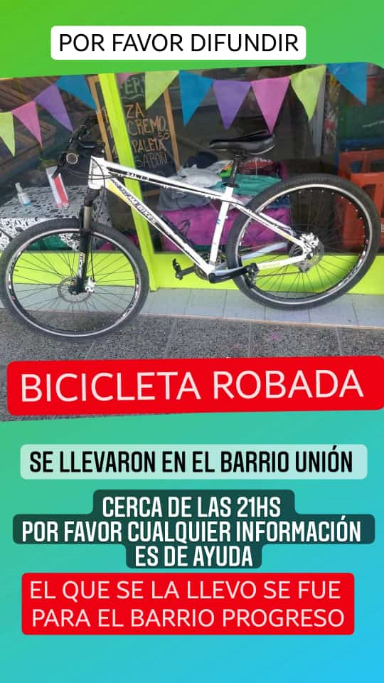 Según se supo, se encontraba en barrio Unión cuando una persona tomó la bicicleta y huyó rápidamente en dirección al barrio Progreso. Ocurrió el martes alrededor de las 21.