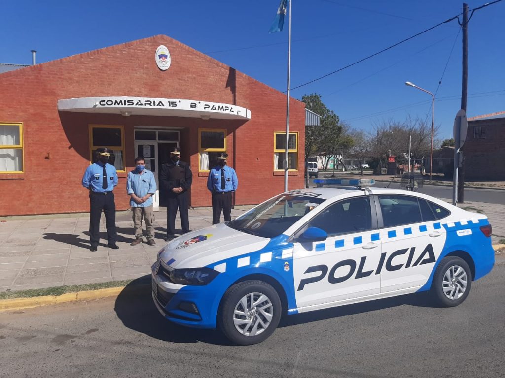 Según expresó el comisario inspector Claudio Vinet, “Por primera vez en la historia institucional la comisaría 15 del barrio Pampa tiene su móvil 0km un VW Virtus año 2021”.