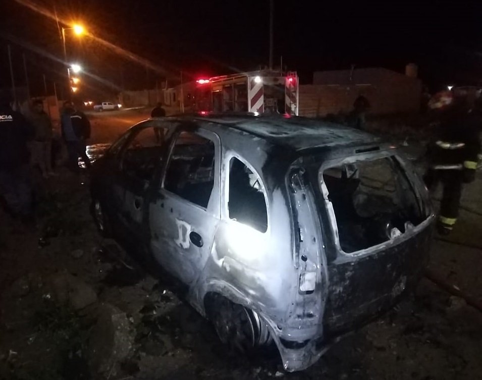 Un vehículo fue consumido totalmente por el fuego esta madrugada en el barrio Altos del Sur de Plaza Huincul. Los bomberos voluntarios acudieron, pero las llamas estaban ya generalizadas.