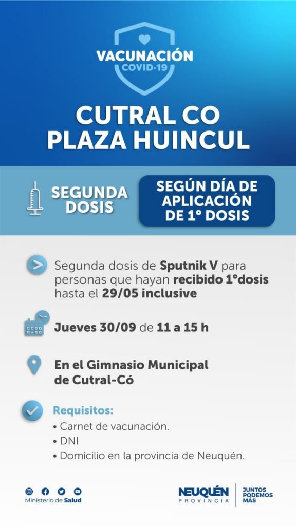 Las segundas dosis se aplicarán para aquellas personas que se vacunaron con la primera dosis hasta el 29 de mayo de este año. Deben llevar el carnet de vacunación, y el DNI. Se pide que se respete la distancia social y el uso de barbijo.