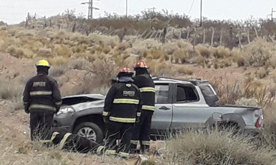 Se trata de una camioneta Fiat Strada, donde viajaban dos mayores de edad y una menor que resultaron con varias lesiones tras el fuerte vuelco. El conductor y testigos sostuvo que para evitar chocar de frente con una camioneta el hombre debió irse a la banquina lo que provocó el accidente.