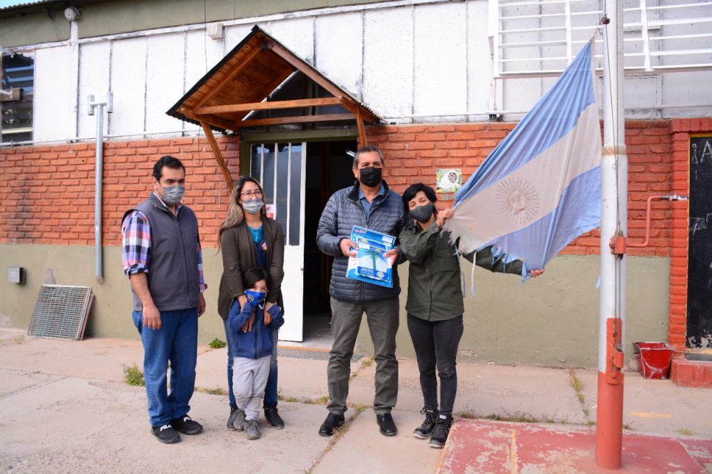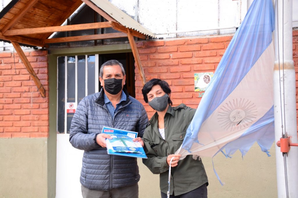 El concejal Ramón Lecaro hizo la entrega de dos banderas: nacional y provincial al Centro de Formación Profesional N°4 de Plaza Huincul. La directora de la institución, Valeria Mont agradeció la donación y señaló que “se trata una demanda que el Centro está haciendo hace varios años y no había tenido respuestas”.