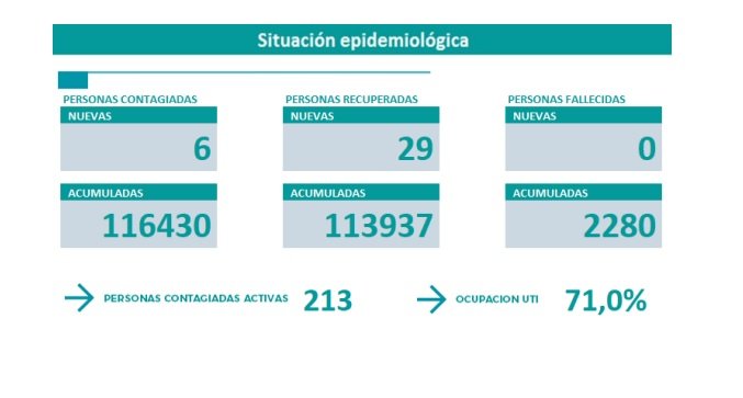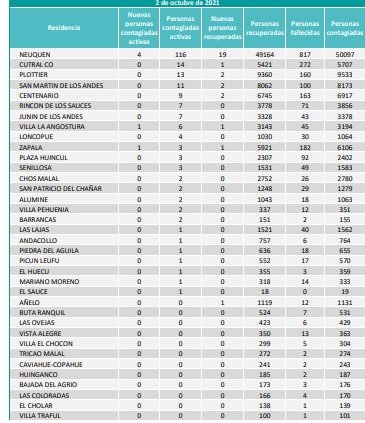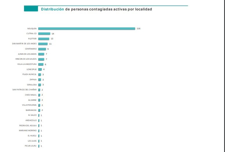 En el reporte provincial, se indica que hubo 29 personas recuperadas y los casos activos en todo el territorio neuquino son 213. Por otra parte, la ocupación de camas UTI en la provincia sigue en el 71 %, de acuerdo a lo indicado.